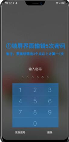 1、解锁vivox23幻彩版手机屏幕时,输入密码的界面是没有忘记密码选项的,需要先连续输错5次密码。