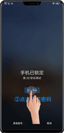2、在输错5次密码之后会提示手机已锁定,此时出现忘记密码选项,点击忘记密码。