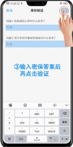 3、在身份验证界面填入密保问题的答案后,点击验证就可以重新设置锁屏密码了。