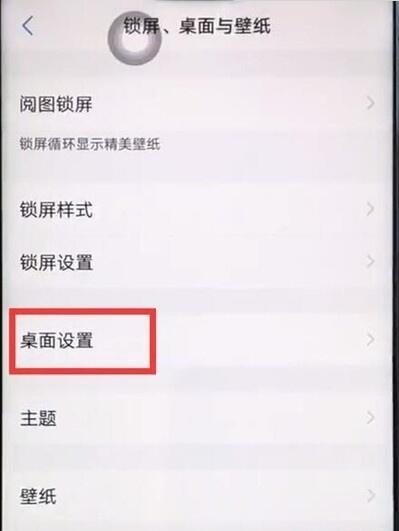 2、点击打开设置菜单下的【锁屏、桌面与壁纸】, 然后点击打开【桌面设置】。