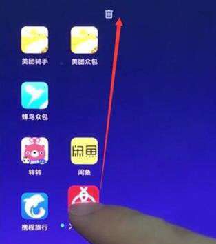 2、长按此软件,屏幕顶端会出现一个垃圾桶标志,把这个软件拖动到上方垃圾筒上