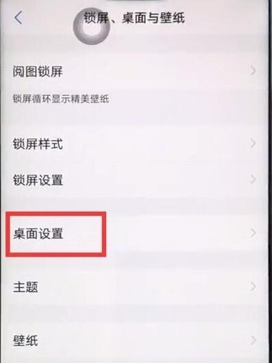 1、点击【设置】进入,点击打开设置菜单下的【锁屏、桌面与壁纸】, 我们点击打开【桌面设置】。