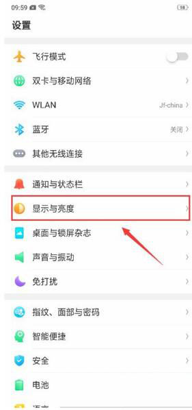 2、进入设置页面之后,找到并且进入【显示与亮度】。