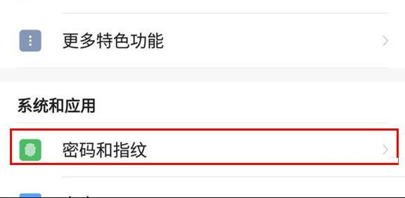 2、在设置界面找到【密码和指纹】选项,点击打开。