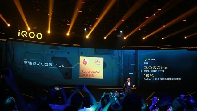 iQOO Pro 5G手机核心配置上,搭载的是主频为2.96GHz的高通骁龙855 Plus处理器 ,以及Adreno 640 GPU。全系配备UFS 3.0高速闪存(读取速度比UFS 2.1 快 85%),以及8GB/12GB运行内存,最高256GB存储空间。