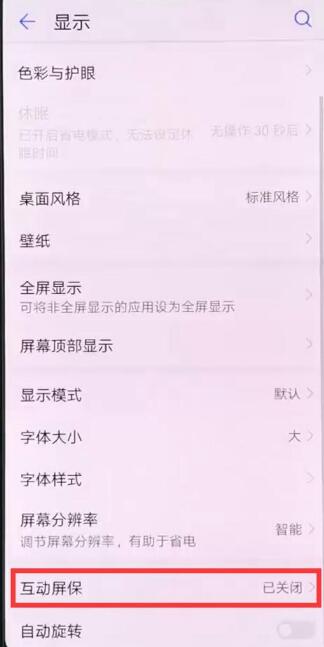 3、进入显示后点击打开【互动屏保】,把互动屏保后面的开关关闭即可。