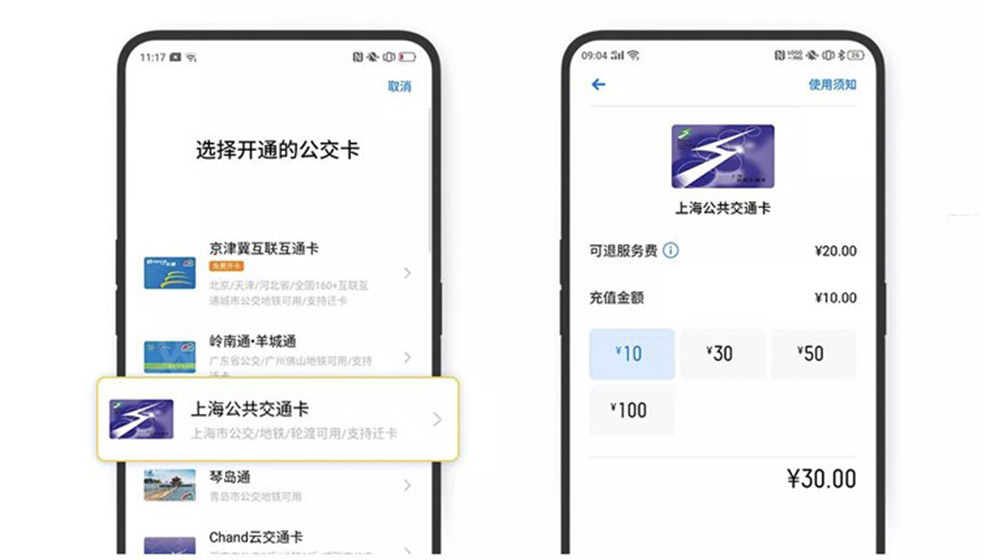 然后选择想要开通的公交卡,并进行充值即可开卡。