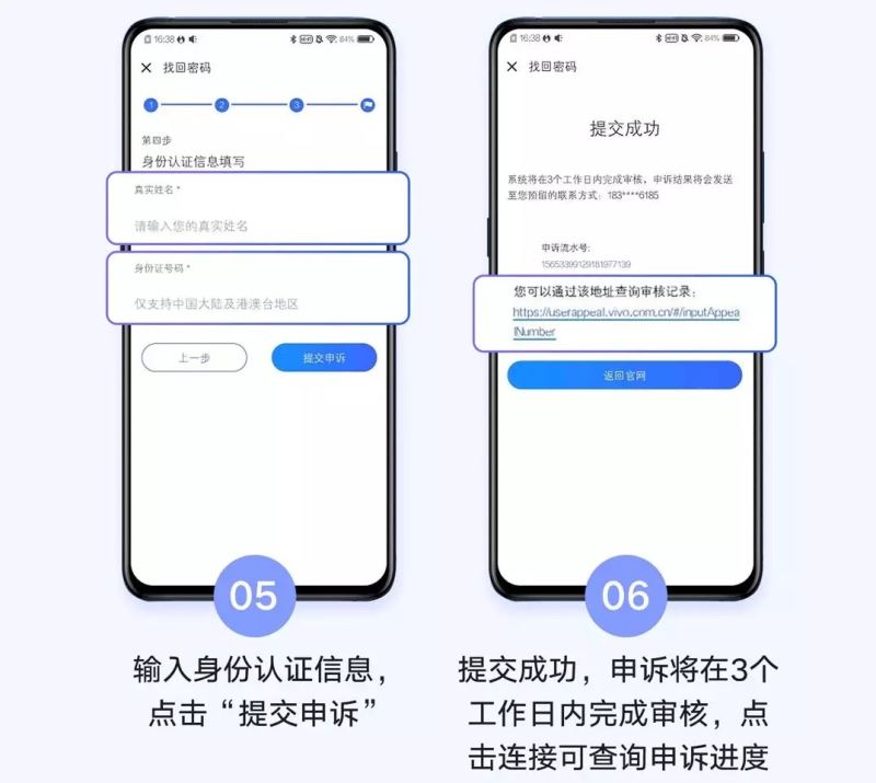 申诉系统直达链接:http://userappeal.vivo.com.cn/