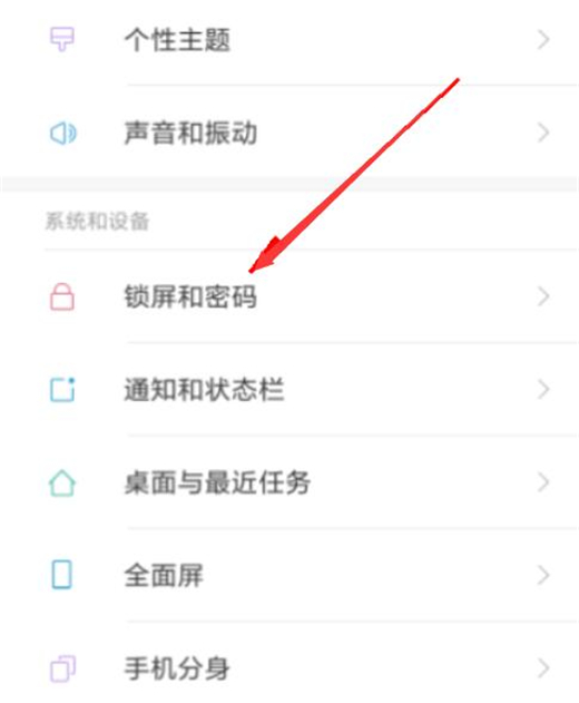 2、在设置界面,找到【锁屏、密码和指纹】功能,点击打开。