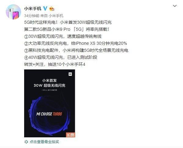 小米9 Pro 5G将首发30W超级无线闪充技术