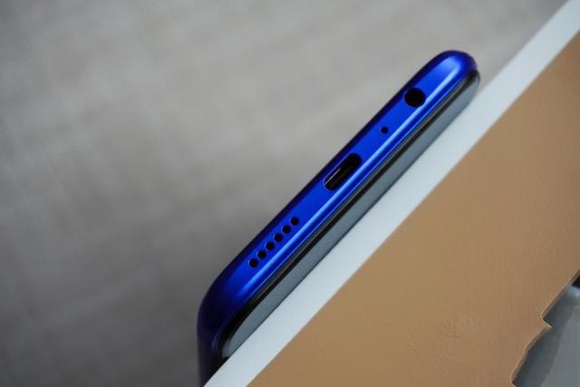 realme Q保留了3.5mm的耳机孔设计。与其他手机一样,realme Q的耳机孔、麦克风、Type-C口和扬声器依次排列在机身的底部。