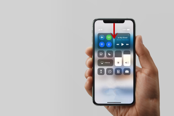 1、首先打开iPhone11pro max,从手机顶部向下滑动屏幕,调出控制中心。