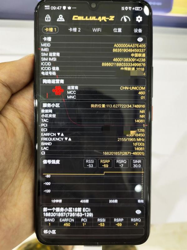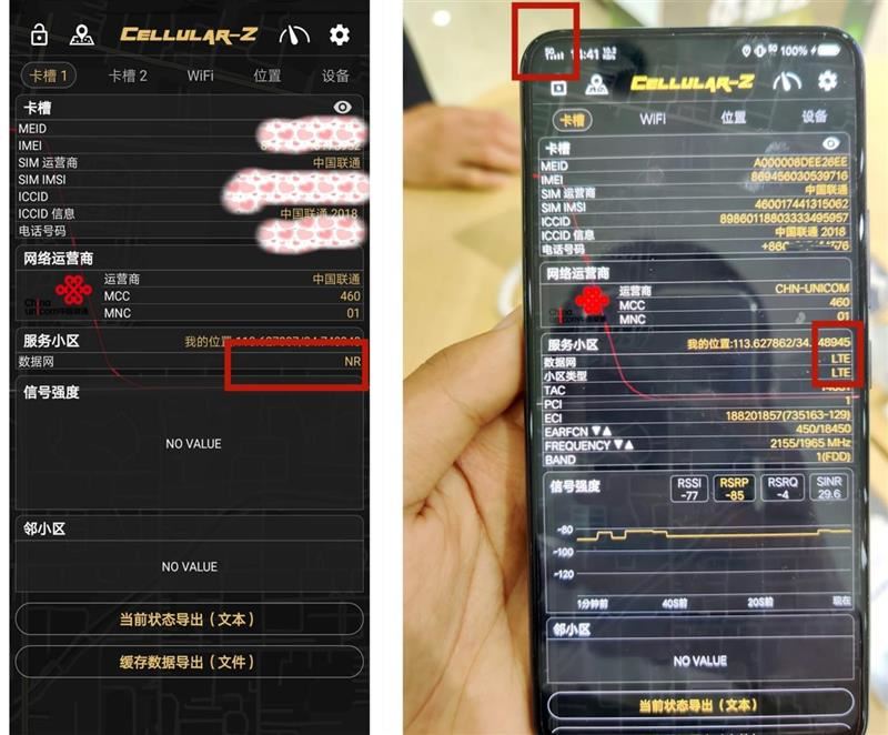 笔者使用Cellular-Z软件观察数据网和小区类型。如上图所示,在偶遇的工程师小哥的帮助下,我们成功锚定了现场测试网络。