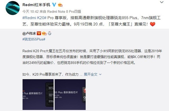 Redmi K20 Pro尊享版搭载骁龙855 Plus处理器