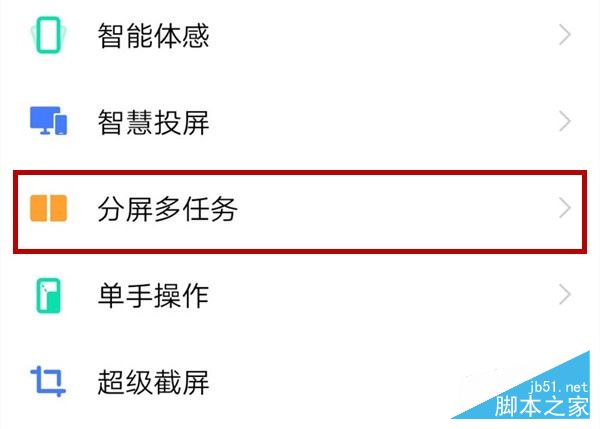 2、往下滑动,找到“分屏多任务”并点击进入。