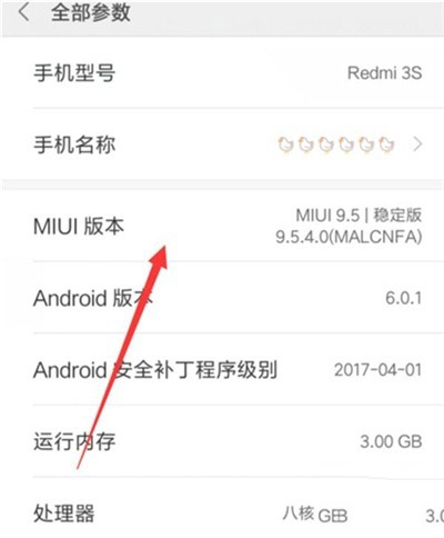 4、然后多次连续点击MIUI版本这个位置,点击6次后下方就会出现开发者选项的提醒。