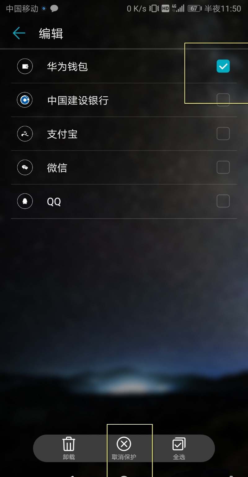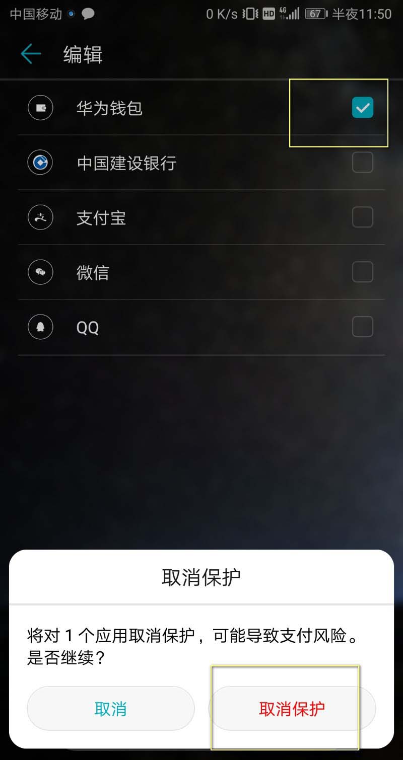 以上就是华为支付宝保护中心取消保护应用的方法,希望大家喜欢,请继续关注脚本之家。