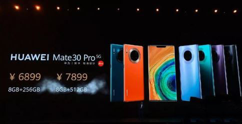 华为Mate 30 Pro 5G版:8GB+256GB,6899元,8GB+512GB,7899元。