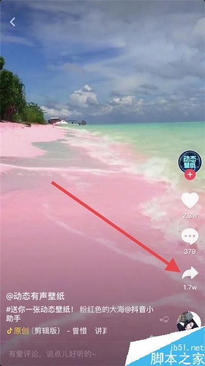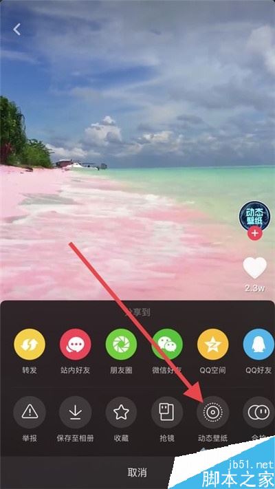 2、找一个想要设为壁纸的视频,点击转发键