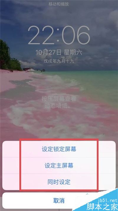 13.锁定屏幕后,这时就可以看到已经换好的壁纸了,按住屏幕,视频就会动了