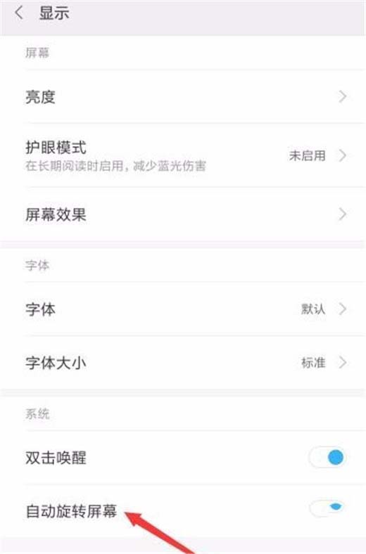 3、在最下面可以看到一项为【自动旋转屏幕】的设置项,把后面的开关关闭即可。
