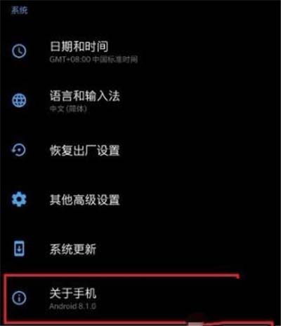 2、进去一加系统设置界面之后,下滑到最后,点击【关于手机】选项。