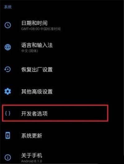 4、返回上一级系统设置界面,找到【开发者选项】,点击打开。