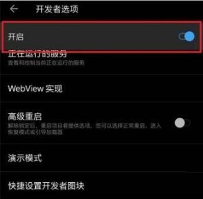5、进入开发者选项界面之后,开启开发者选项即可。