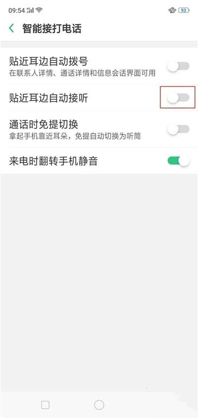 4、开启【贴近耳边自动接听】旁边的按钮,绿色即为开启。