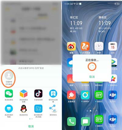 3、 在接收文件的手机端,选择接收,即可正常使用 oppo 互传传输共享文件了。