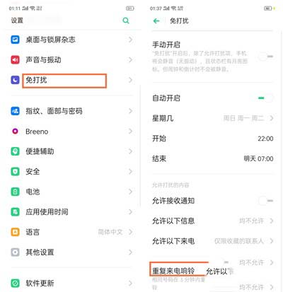 开启方式:设置—免打扰—重复来电响铃,开启。