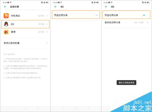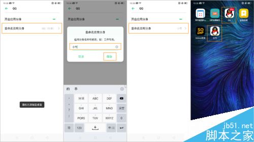 3、打开相应开关即可在桌面生成一个全新的应用副本,如果怕不好区分账号,可以点击【重命名应用分身】进行命名,然后保存即可。