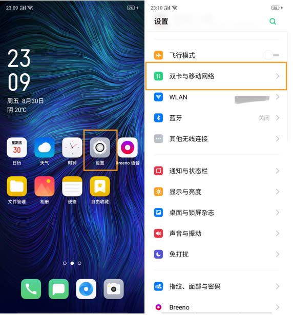 2、通过手机【设置】—【双卡与移动网络】进入。