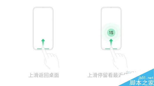 1、两侧返回:顾名思义从屏幕底部两侧向上滑动可以返回上一级;从屏幕底部中间向上滑动直接返回桌面;从屏幕底部中间上滑并停留可以查看管理多任务。