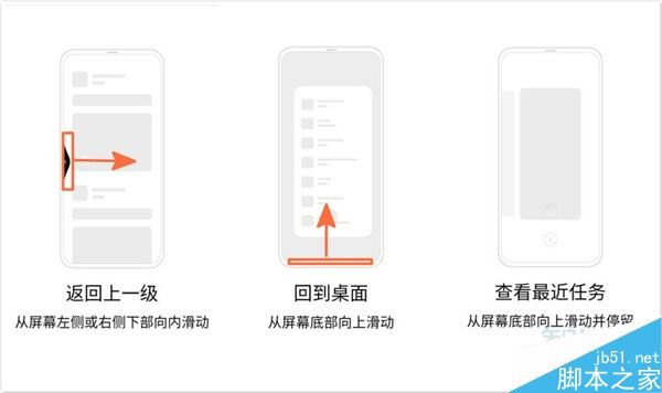 3、右侧返回:从屏幕底部右侧上滑可以返回上一级;屏幕底部中间上滑返回桌面;屏幕底部左侧向上滑动查看管理多任务