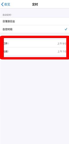 4、/5设置自动开启时间,选择“自动定时”为“日落到日出”,还可以“自定时段”。