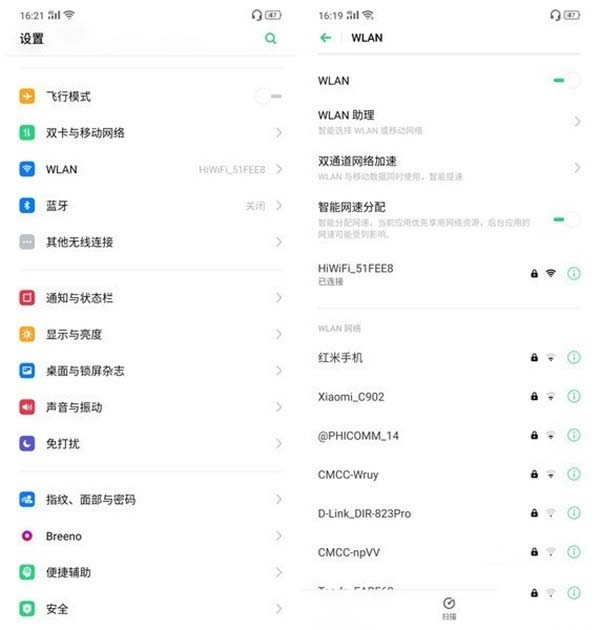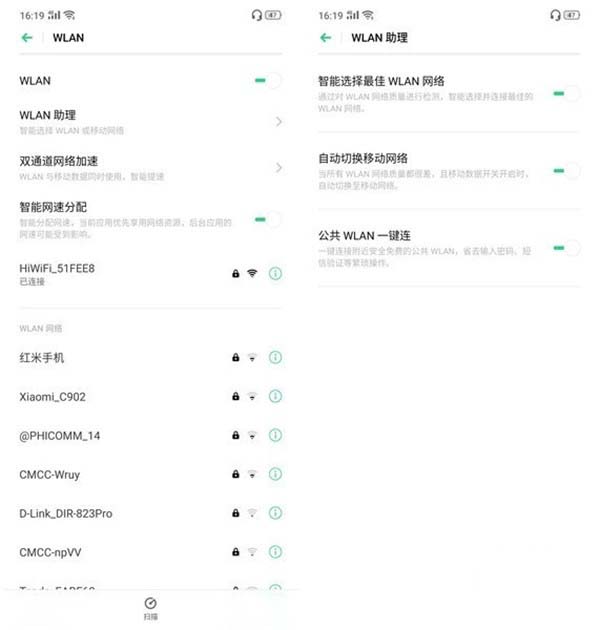 WLAN 助理:无需手动选择移动网络还是无线网络,AI 智能判断当前网络网络质量是否满足用户使用需求,开启后可以智能选择网络质量较好的无线网络,并及时的切换至移动网络保证网络质量。(温馨提示:开启后,切换移动网络会使用您的数据流量,产生资费。