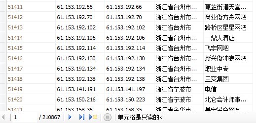 当处理上面的代码之后IP数据将添加到你的数据库中!总数是38万条添加时间在1个小时左右!