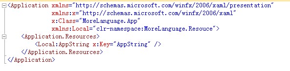 3:打开App.xmal文件,添加以下代码,目的是用于其它的页面绑定字符内容的资源文件。