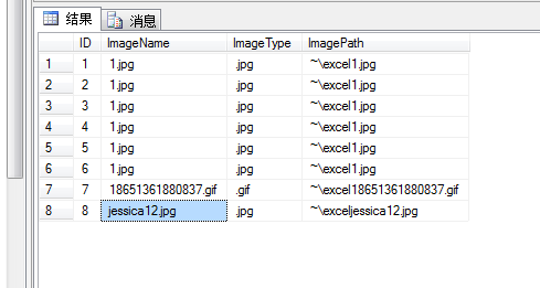 string sql = "insert into image1(ImageName,ImageType,ImagePath) values('" + name + "','" + type + "','~\\excel" + name + "')";