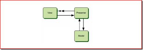 我现在的一个目的是提出一种编程模式,杜绝开发人员将程序写成基于Proxy的MVP,在我看来,唯一的办法就是尽量弱化(不可能剔除)View对Presenter的依赖。实际上,对于MVP来说,View仅仅向Presenter递交用户交互请求,仅此而已。如果我们将View对Presenter的这点依赖关系实现在框架层次中,最终开发人员的编程来说就不需要这种依赖了。那么我就可以通过一定的编程技巧使View根本无法访问Presenter,从而避免Presenter成为Proxy的可能的。