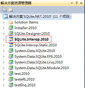 SQLite.Interop.2010这个项目是核心,我们需要对它的一些设置稍微做些修改,这些小修改我花了一些时间摸索才成功,这里就略去具体的摸索过程,直接给出摸索成果: