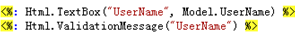 例如:Html.TextBoxFor(model=>model.UserName),则验证有效;