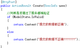 页面中如果使用了MVC验证功能,那么在后台对应的Action中必须通过ModelState.IsValid判断是否通过了服务器端验证。只有通过了服务器端验证,才能执行其他的业务逻辑代码