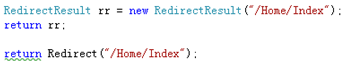 在Controller类中的辅助方法为:Controller.Redirect(string url)