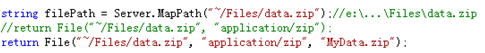 在Controller类中的辅助方法为:Controller.File(string filePath, string contentType, string fileName);