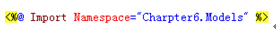 方式一:在指定的页面添加<%@ Import Namespace=”命名空间” %>