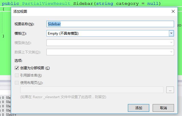 三、创建一个分部视图 Partial View