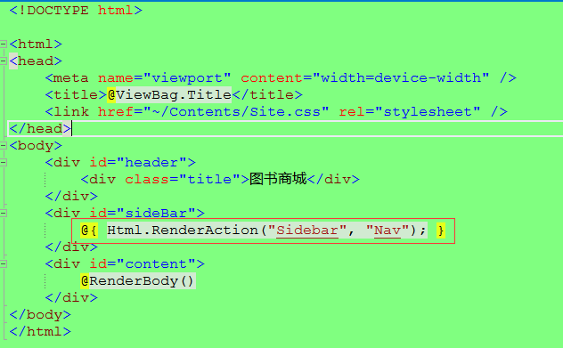 因为需要在父视图中呈现另一个 Action 中的分部视图,所以原来的_Layout.cshtml布局页修改如下: