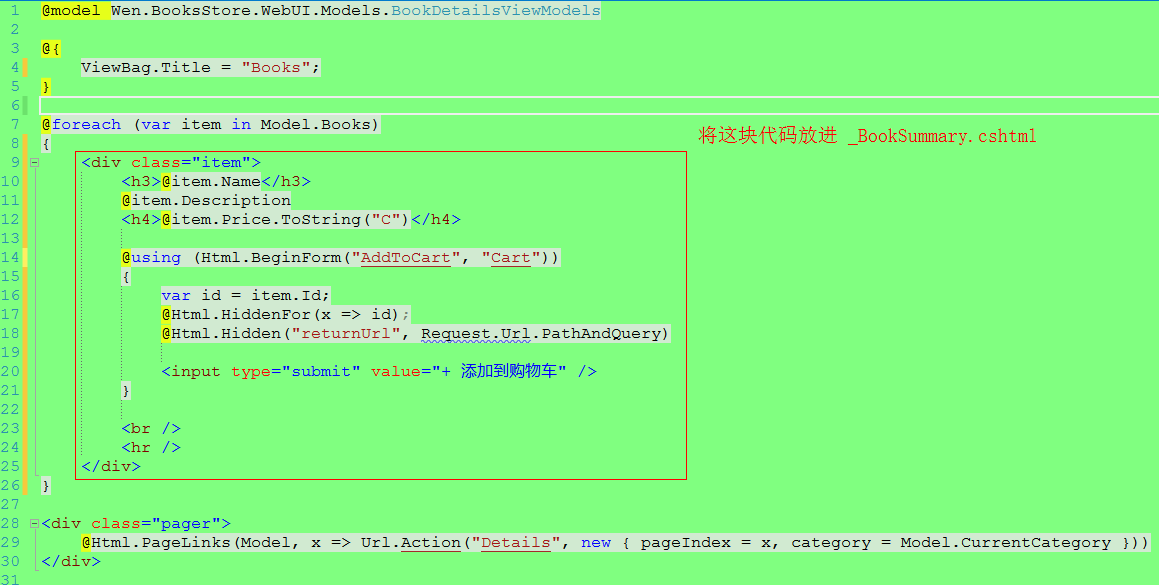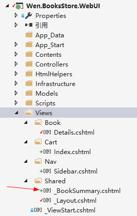在 Shared 内部新建一个名为_BookSummary.cshtml 的视图,并且把之前Details.cshtml 的代码进行整理。